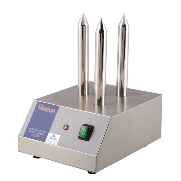 Deze broodprikker is speciaal voor het verwarmen van hotdogbroodjes. Het apparaat verwarmt 3 broodjes tegelijkertijd en heeft een RVS behuizing. 156Watt