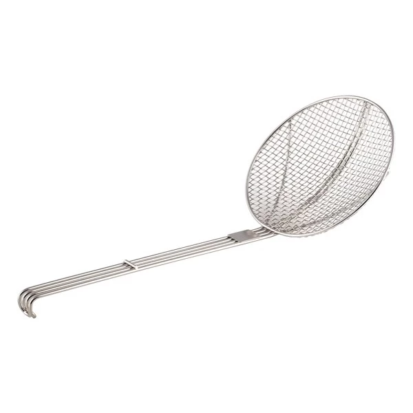 Door de lange steel en de gaatjes is deze schep zeer geschikt om hete friet uit de uitlekbak te scheppen en vervolgens te serveren.