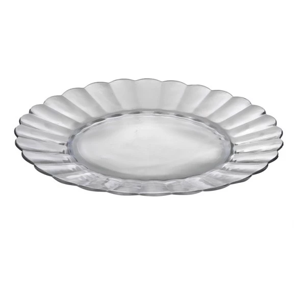 Dit gebaksbordje van glas zorgt voor een luxe uitstraling door de unieke rand.