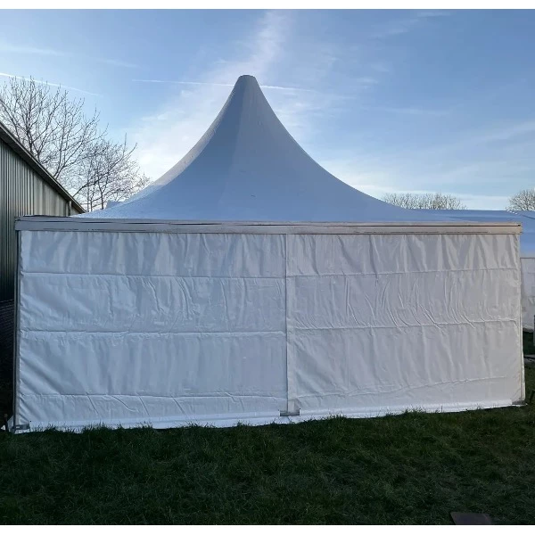 De pagodetent is een zeer veelzijdige tent. Zo kunt u hem in uw tuin plaatsen voor een bruiloft, bij uw bedrijf voor een personeelsfeest, op een dance-event of een landgoedfair, de pagodetent past overal bij.