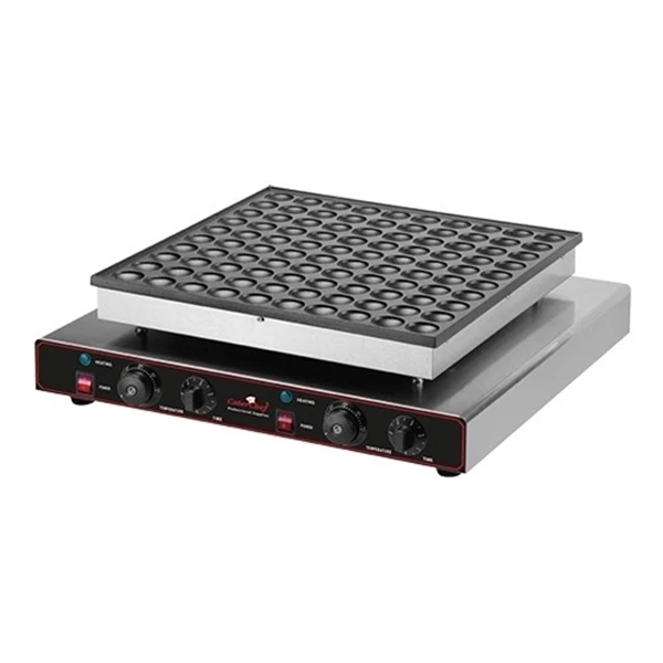 Met deze elektrische poffertjesplaat kunt u per keer 100 poffertjes bakken.